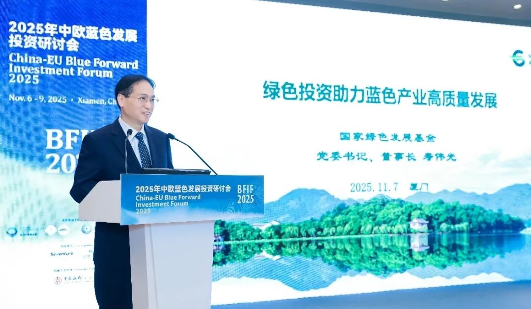 11月7日,国家绿色发展基金党委书记、董事长寿伟光出席2025厦门国际海洋周中欧蓝色发展投资研讨会等交流活动,并在研讨会上发表题为“绿色投资助力蓝色产业高质量发展”的主旨演讲。